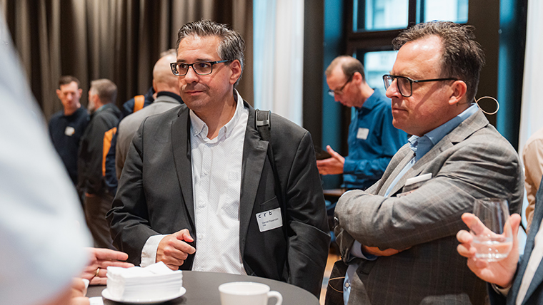 Die im Anschluss von Kurt Iten, Sales- und Partnermanager bei CRB, moderierte Podiumsdiskussion mit den drei Referenten und Michel Bohren, Vorsitzender der CRB-Geschäftsleitung, fokussierte auf die Chancen und Risiken im Umgang mit KI in der Baubranche. Der abschliessende Stehlunch wurde ausgiebig für den persönlichen Austausch und zur Netzwerkpflege genutzt.